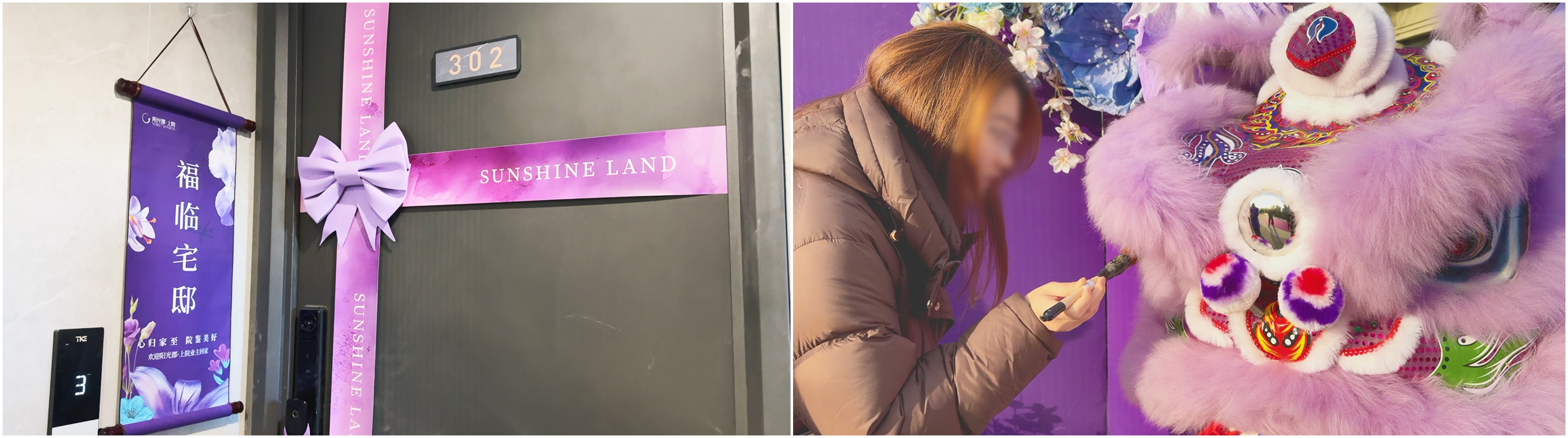 仪式感,是对美好生活真挚的期许。漫步园区,艺术景观与紫色花艺交相辉映,每一步都浸润在精心营造的归家氛围中。在专属合影区,专业摄影师以镜头定格幸福瞬间,为每个家庭留下值得珍藏的温馨画面。当业主行至新居门前,亲手剪开入户装饰,推门而入的刹那,所有对家的憧憬与期盼,都在这一刻化作触手可及的美好现实。