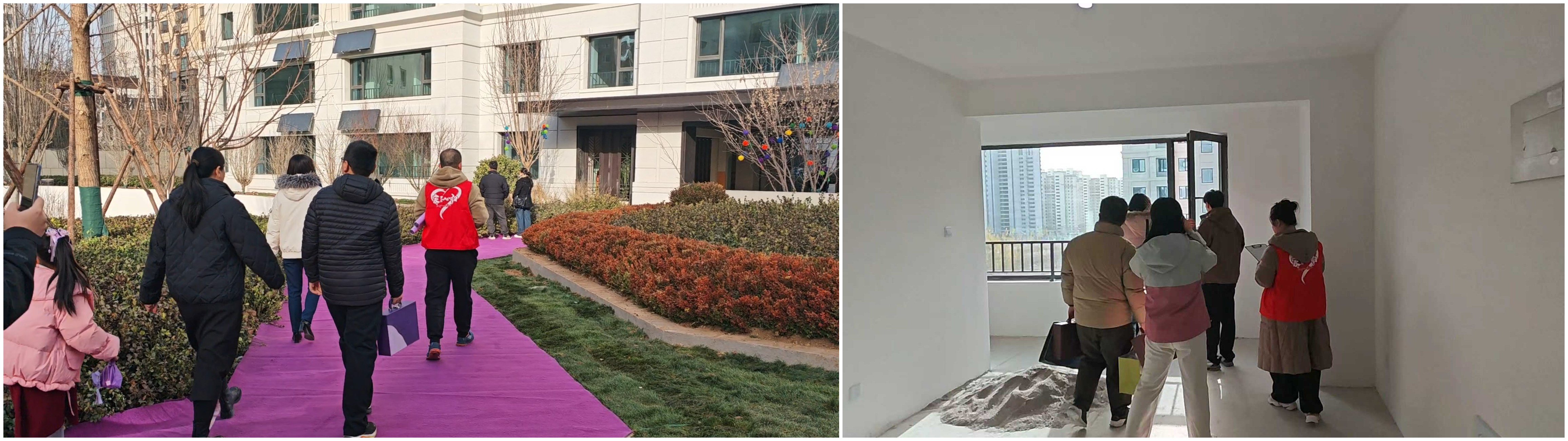 仪式感,是对美好生活真挚的期许。漫步园区,艺术景观与紫色花艺交相辉映,每一步都浸润在精心营造的归家氛围中。在专属合影区,专业摄影师以镜头定格幸福瞬间,为每个家庭留下值得珍藏的温馨画面。当业主行至新居门前,亲手剪开入户装饰,推门而入的刹那,所有对家的憧憬与期盼,都在这一刻化作触手可及的美好现实。