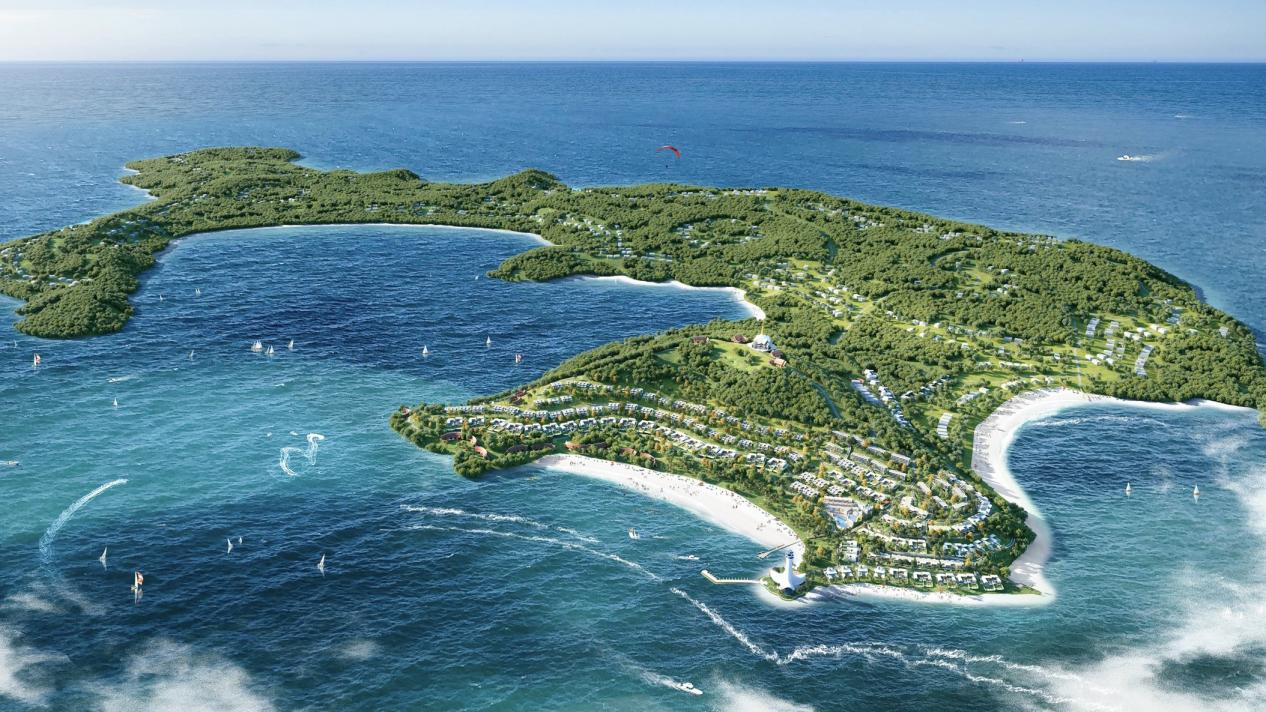 高龙撒冷岛为西哈努克港核心滨海旅游岛屿,岛内生态环境优良,拥有绵长优质白沙滩、清澈海域及丰富珊瑚礁资源,海洋生态与自然禀赋突出,是发展高端生态滨海旅游的核心区域。依托这一资源优势,西港高龙撒冷岛国际度假村以轻奢旅居为核心,打造皇家水疗别墅酒店与公主洋房、揽海独栋等多元产品,全面满足高端旅居、家庭度假及投资置业等多重需求。